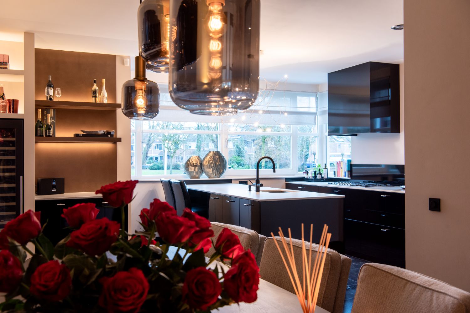 More 4 Health, Conscious Food & Lifestyle, heerlijk kokkerelt en werkt aan nieuwe recepten voor haar bedrijf. Daarover later meer. Zwart is de kleur die overal opduikt, van de glimmende kasten in de Lodder-keuken en de nieuwe koffiepantry mét ingebouwde wijnklimaatkast tot de Belgische hardstenen vloertegels, binnendeuren en plinten. “De schilder, die vijf weken bezig is geweest, wilde zeker weten dat hij ook de schouw en openhaard in die kleur moest verven. Heel blij dat we dat gedaan hebben,” zegt Heleen.
